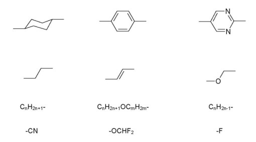 elements in the rigid molecular core, the bridging groups, flexible chains and polar end groups.